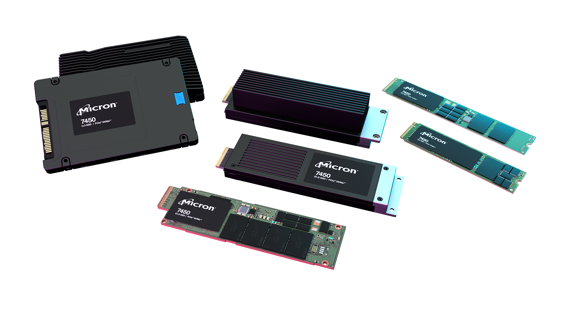 The 7450 SSD features multiple capacity options to fit myriad data center needs. Its wide capacity range — from 400GB to 15.36TB — includes an industry-leading capacity of 8TB in a compact E1.S form factor. In addition, the industry’s broadest set of form factors for data center SSDs addresses the unique challenges of data center workloads.